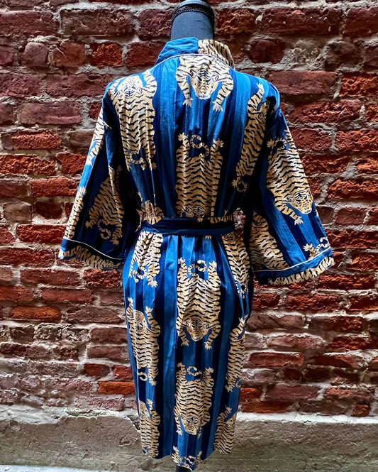 Tiger Print Broad Striped Indigo & Navy Kimono Robe
